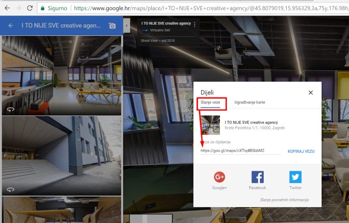 Osim što se vaša virtualna šetnja prikazuje na Google mreži i Facebooku, možete ju postaviti i na svoju web stranicu. Uvijek preporučujemo klijentima da to naprave jer tako poboljšavaju interakciju korisnika sa svojim brandom, pomažu korisniku da se lakše snađe i prije nego je fizički došao te osnažuju povjerenje kod svojih posjetitelja jer vide da se radi o ozbiljnoj i transparentnoj tvrtki.